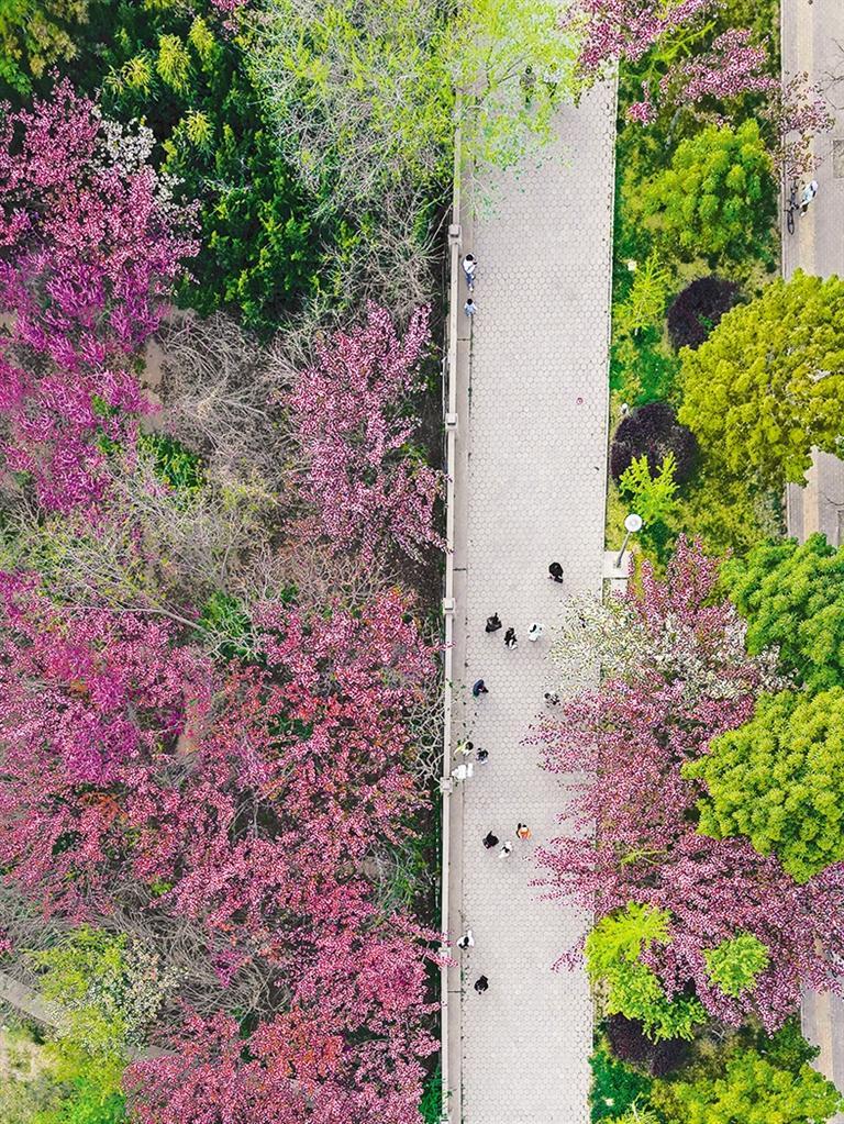 4月17日,甘肃省兰州黄河风情线春意盎然,各类花朵竞相绽放,吸引众多游客前来观赏。