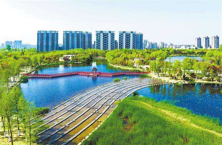 4月16日,江苏省宿迁市泗洪县重岗街道玉珠湖生态公园春意盎然,景色如画。近年来,泗洪县聚焦居民需求和关切,精心建设一批可游憩、可健身的“口袋公园”,让生态文明建设成果更好惠及于民。 张连华摄(中经视觉)