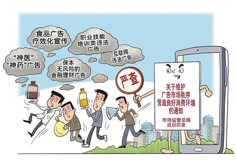 市场监管总局近日印发《关于维护广告市场秩序 营造良好消费环境的通知》,在全国开展广告市场秩序整治。今年将严查“神医”“神药”广告、食品广告疗效化宣传、保本无风险的金融理财广告、职业技能培训类违法广告、互联网违法广告等,切实守护消费者合法权益。重点民生领域违法违规广告时有发生,损害消费者合法权益,也不利于营造公平竞争的市场环境,迫切需要开展清理整治工作。各地市场监管部门要把治标和治本结合起来,注重对监管发现问题的梳理,有针对性地加快完善长效机制;把应急监管和长久治理结合起来,助力相关行业主管部门推进完善行业管理规则,努力达成“查办一案、教育一批、规范一行”的治理成效。(时 锋)