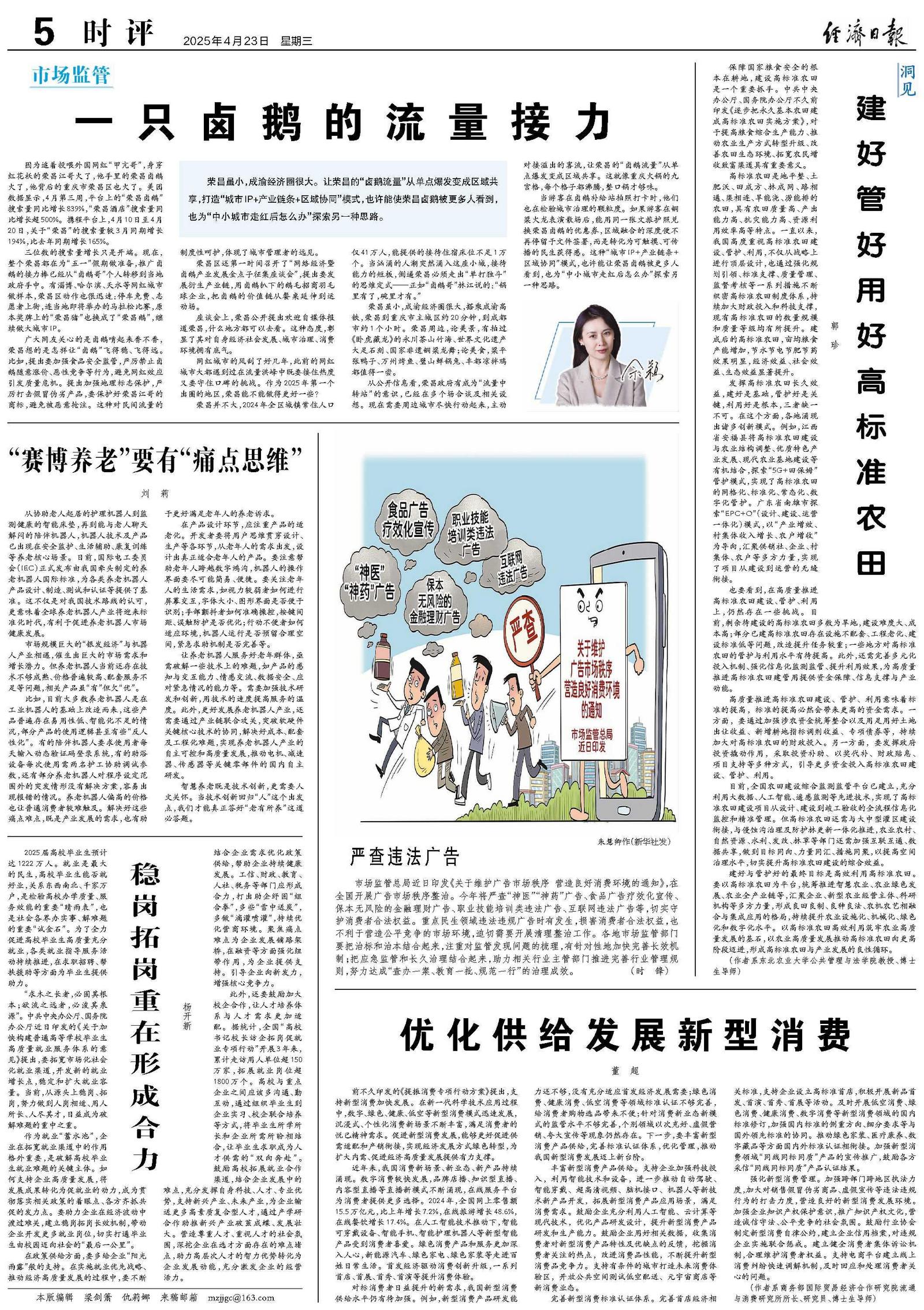 在政策供给方面,要多给企业“阳光雨露”般的支持。在实施就业优先战略、推动经济高质量发展的过程中,要不断结合企业需求优化政策供给,帮助企业持续健康发展。工信、财政、教育、人社、税务等部门应形成合力,打出助企纾困“组合拳”,多些“雪中送炭”,多做“滴灌喷灌”,持续优化营商环境。聚焦痛点难点为企业发展铺路架桥,在融资等方面强化纽带作用,为企业提供支持。引导企业向新发力,增强核心竞争力。