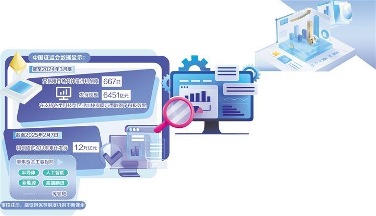 中国证监会数据显示,截至2025年2月7日,科创债试点以来累计发行1.2万亿元,募集资金主要投向半导体、人工智能、新能源、高端制造等领域,审核注册、融资担保等制度机制不断健全。