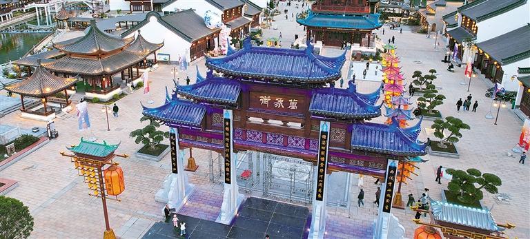 经过近3年的建设,甘肃省陇南市文旅新地标——武都万象街已完成各项运营筹备工作,将于4月25日面向公众正式开放。这是4月22日拍摄的武都万象街景观。