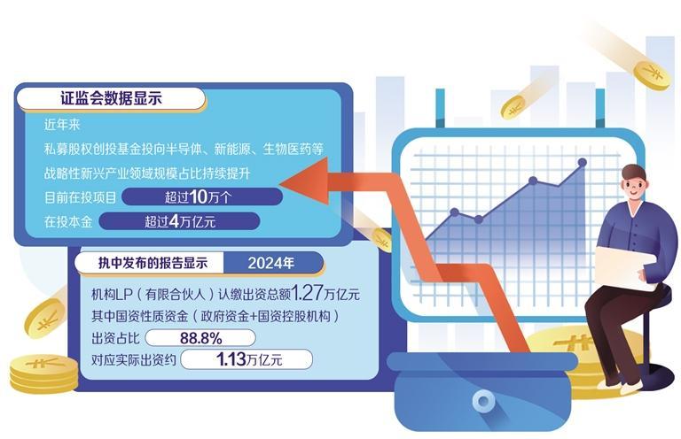 当前,我国正处于新一轮科技革命和产业变革浪潮中,以人工智能、新一代信息技术为代表的一批重大颠覆性技术创新正在创造新产业、新业态,释放出巨大的发展潜能。创业投资凭借“风险共担、利益共享”的特征,与科技创新的风险特性高度适配,在引导资源要素向科技创新聚集,畅通科技、产业、资本良性循环方面具有不可替代的作用。证监会数据显示,近年来,私募股权创投基金投向半导体、新能源、生物医药等战略性新兴产业领域规模占比持续提升,目前在投项目超过10万个,在投本金超过4万亿元。