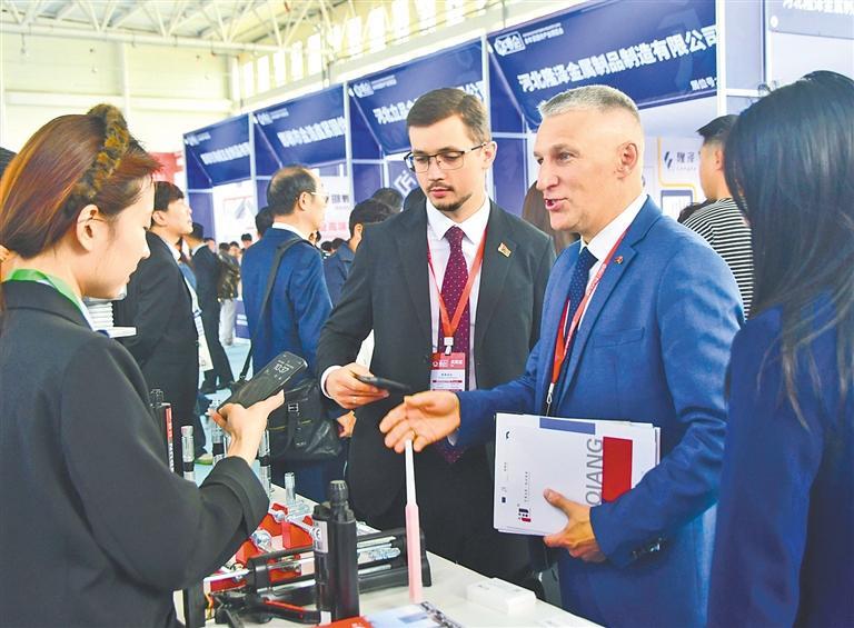 4月21日,在2025永年首届紧固件产业博览会上,外国客商在了解紧固件产品信息。本届博览会为期3天,215家紧固件知名企业参展,吸引来自40多个国家和地区的客商到会采购。邯郸市永年区被誉为“中国紧固件之都”,2024年,永年区紧固件产量710万吨,产值超过500亿元,产品出口110多个国家和地区。胡高雷摄(中经视觉)