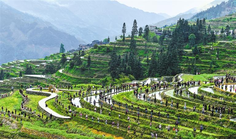 4月26日,村民在贵州省从江县加榜梯田上参加“开秧门”春耕仪式。