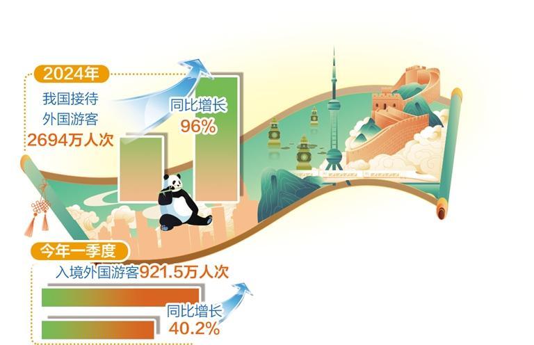 近年来,我国有序扩大自主开放和单边开放,对38个国家实行了单方面免签政策,对54个国家实行过境免签并将停留时间延长至240小时,推出了一系列入境便利化政策。2024年我国接待外国游客2694万人次,同比增长96%。入境旅客总花费达到942亿美元,增长了77.8%。今年一季度入境外国游客921.5万人次,同比增长40.2%。