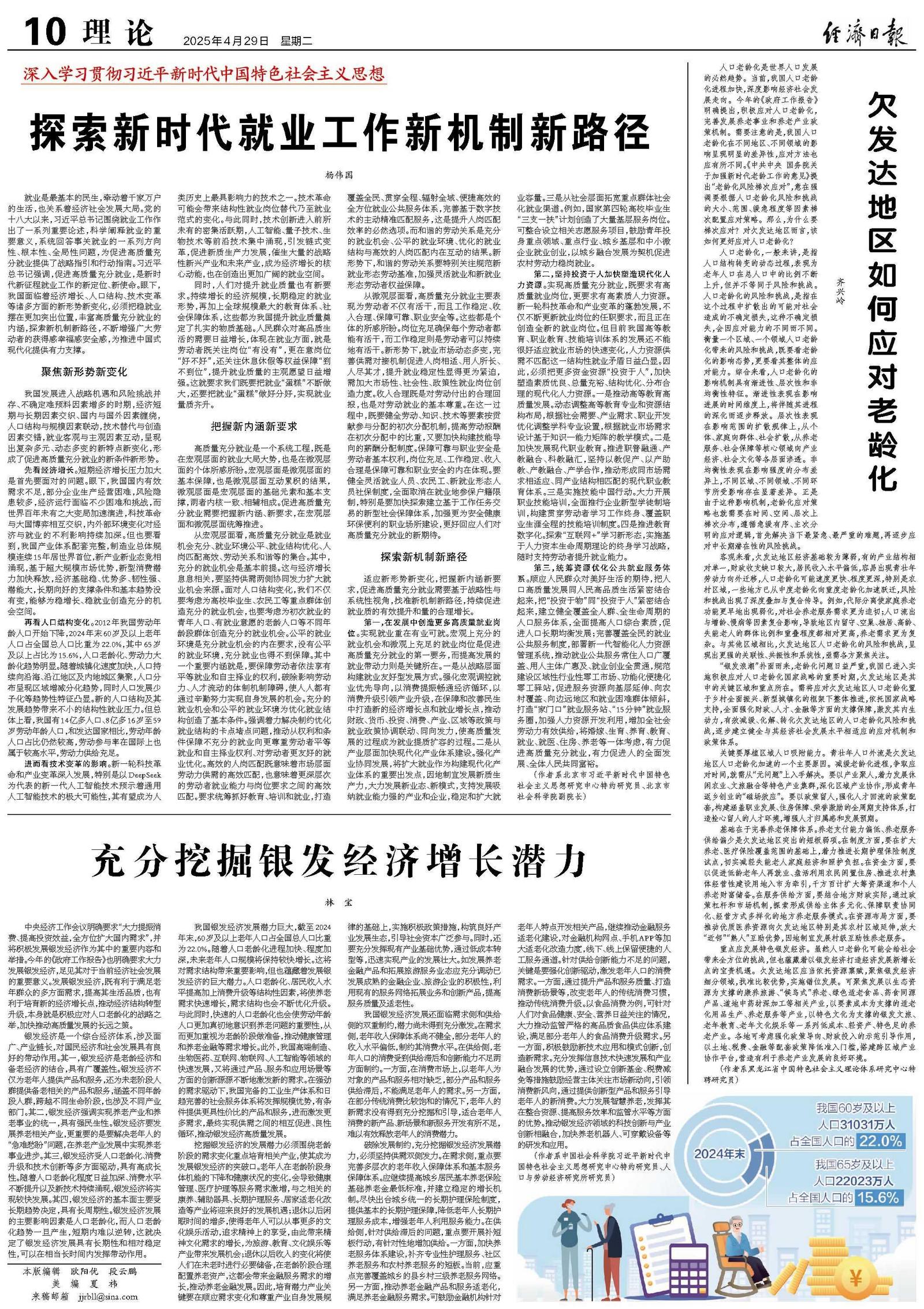 中央经济工作会议明确要求“大力提振消费、提高投资效益,全方位扩大国内需求”,并将积极发展银发经济作为其中的重要内容和举措。今年的《政府工作报告》也明确要求大力发展银发经济,足见其对于当前经济社会发展的重要意义。发展银发经济,既有利于满足老年群众的多方面需求,提高其生活品质,也有利于培育新的经济增长点,推动经济结构转型升级,本身就是积极应对人口老龄化的战略之举,加快推动高质量发展的长远之策。