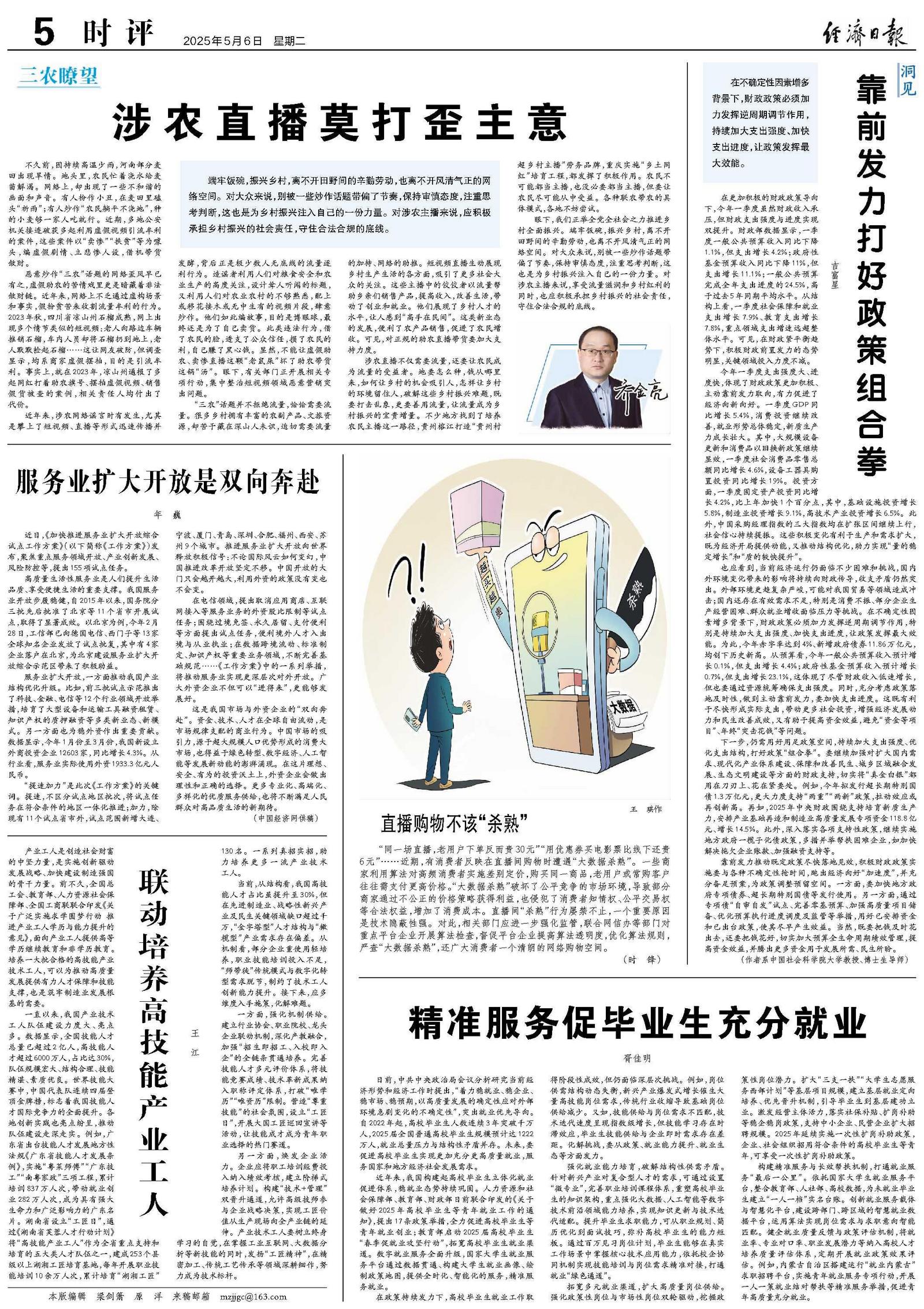 下一步,仍需用好用足政策空间,持续加大支出强度、优化支出结构,打好政策“组合拳”。要继续加强对扩大国内需求、现代化产业体系建设、保障和改善民生、城乡区域融合发展、生态文明建设等方面的财政支持,切实将“真金白银”都用在刀刃上、花在紧要处。例如,今年拟发行超长期特别国债1.3万亿元,更大力度支持“两重”“两新”政策,拉动效应或再创新高。再如,2025年中央财政围绕支持培育新质生产力,安排产业基础再造和制造业高质量发展专项资金118.8亿元、增长14.5%。此外,深入落实各项支持性政策,继续实施地方政府一揽子化债政策,多措并举帮扶困难企业,如加快解决拖欠企业账款、加强融资支持等。