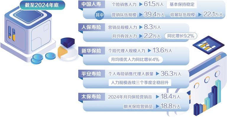 从各家保险公司近期发布的2024年年报可以看到,2024年,中国人保银保渠道实现原保费收入511.6亿元,同比增长4.3%。中国人寿2024年银保渠道总保费为762.01亿元,首年期交保费为187.76亿元,续期保费占渠道总保费的比重为60.76%。银保渠道客户经理为1.9万人。新华保险2023年、2024年公司银保业务连续创新高,均超过百亿元。特别是2024年,该公司银保新业务价值达到25亿元,实现增速高达516%。