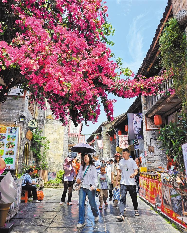 ▶5月2日,游客在广西昭平县黄姚古镇石板街欣赏古镇美景。