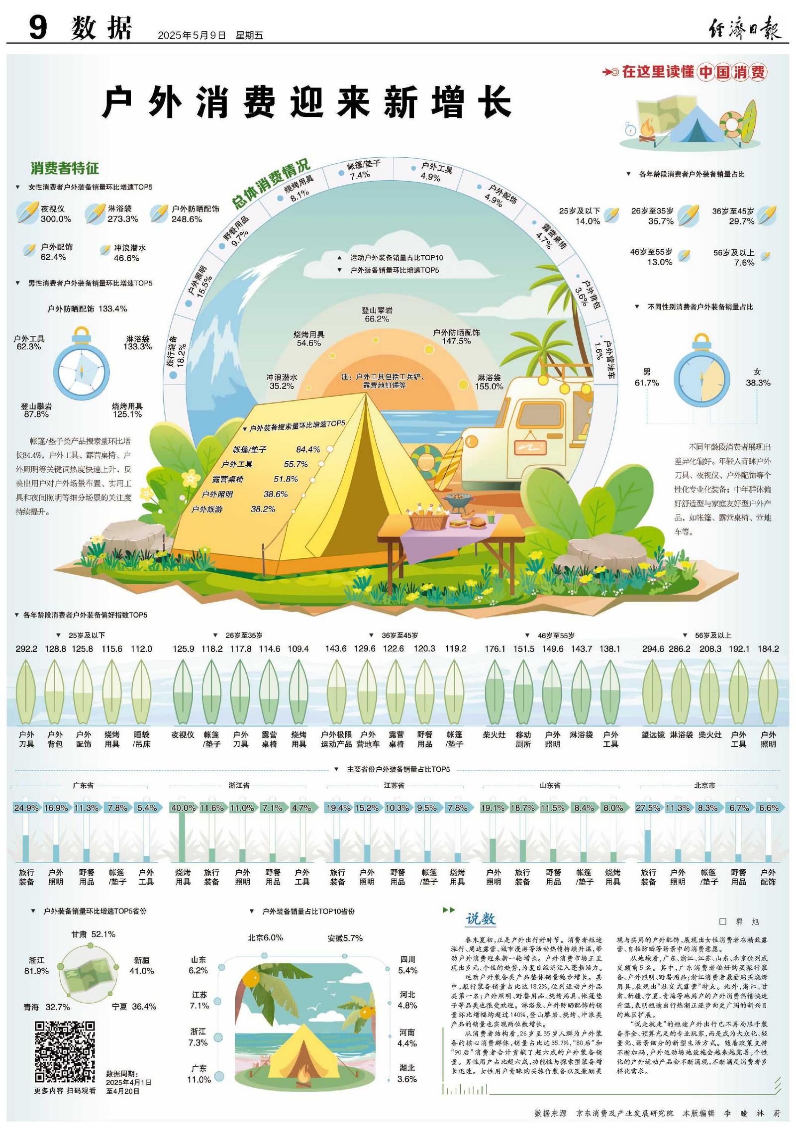 春末夏初,正是户外出行好时节。消费者短途旅行、周边露营、城市漫游等活动热情持续升温,带动户外消费迎来新一轮增长。户外消费市场正呈现出多元、个性的趋势,为夏日经济注入蓬勃活力。