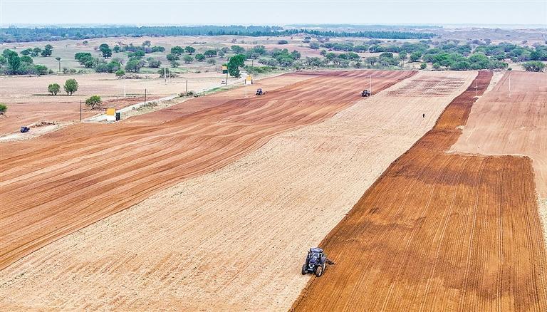 5月9日,在内蒙古通辽市科尔沁左翼后旗巴胡塔苏木伊和布拉格嘎查,农民驾驶使用北斗导航的拖拉机翻地。新华社记者 连 振摄