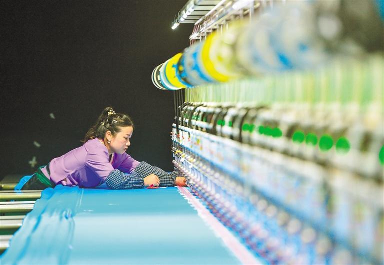 5月8日,贵州省从江县一家民族刺绣企业生产车间,工人在用数控机床生产刺绣产品。近年来,从江县依托当地传统文化,加大对刺绣产业的扶持力度,让传统技艺与现代工艺相结合,带动当地群众增收。卢忠南摄(中经视觉)