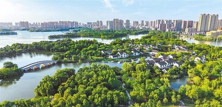 5月12日拍摄的湖北省黄冈市黄州区江柳摇村。近年来,当地依托遗爱湖畔区位优势,打造农文旅融合景点,带动村民致富。
