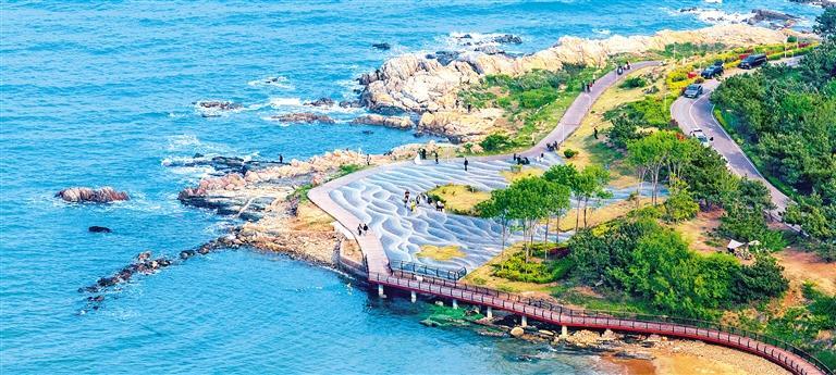 5月13日,山东青岛西海岸新区银沙滩风景区白浪追逐海滨,景色灵动迷人,吸引了众多游客前来游玩。韩加君摄(中经视觉)