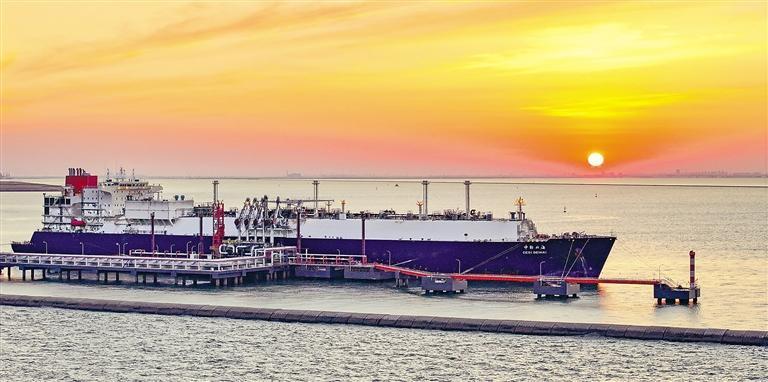 5月15日,载运7万吨液化天然气的“中能北海”轮顺利靠泊中国石化天津LNG接收站。这是该站今年接卸的第15艘液化天然气(LNG)运输船,累计接卸量突破110万吨,已向京津冀地区输送天然气15亿立方米。王 军摄(中经视觉)