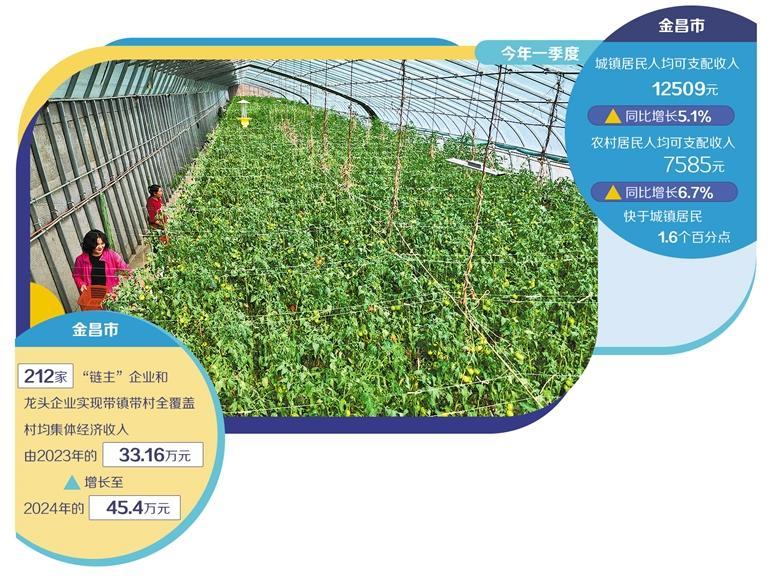 为推进新型城镇化和乡村全面振兴“双轮驱动”,金昌市依托工业优势,创新开展“链主”企业带镇、龙头企业带村行动,全市212家“链主”企业和龙头企业实现带镇带村全覆盖,村均集体经济收入由2023年的33.16万元增长至2024年的45.4万元,产业带动城乡融合发展的效应日益显现。