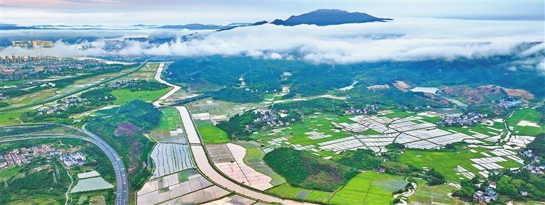 5月17日,雨后的江西省吉安市吉水县文峰镇葛山村,云雾缭绕、水润田畴。近年来,吉水县加大农田改造和乡村人居环境整治力度,不断夯实农旅融合发展基础。朱海鹏摄(中经视觉)