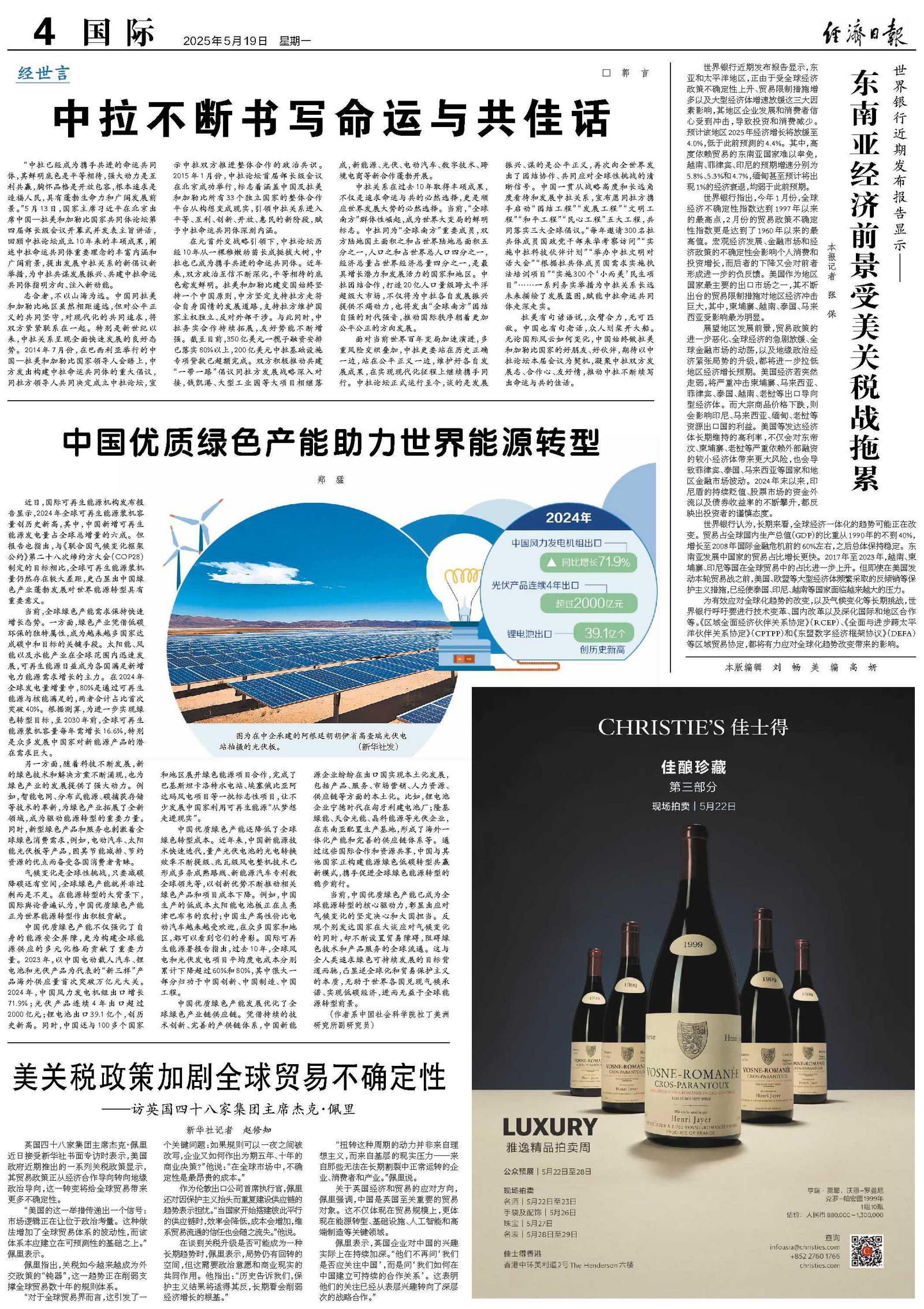 气候变化是全球性挑战,只要减碳降碳还有空间,全球绿色产能就并非过剩而是不足。在能源转型的大背景下,国际舆论普遍认为,中国优质绿色产能正为世界能源转型作出积极贡献。