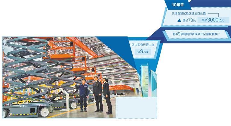 今年是我国北方首个自贸试验区——天津自贸试验区挂牌10周年。天津市副市长、天津自贸试验区管委会主任李文海介绍,10年来,天津自贸试验区进出口总值增长73%,突破3000亿元大关,有49项制度创新成果在全国复制推广,制度创新指数在全国22个自贸试验区中连续多年位列前三,区内实有经营主体近9万家。