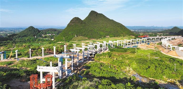 ▲5月11日,位于广西壮族自治区河池市罗城仫佬族自治县的罗鹿高速互通建设现场,一派忙碌景象。廖光福摄(中经视觉)
