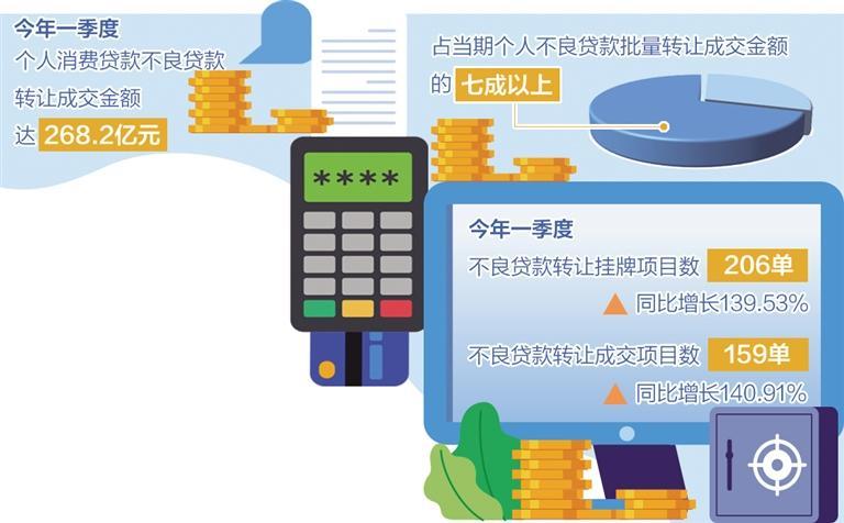 从个人不良贷款批量转让业务运行情况来看,今年一季度个人消费贷款不良贷款无论是业务规模还是挂牌项目数同比均增幅较大。数据显示,个人消费贷款不良贷款转让成交金额达268.2亿元,占当期个人不良贷款批量转让成交金额的七成以上。