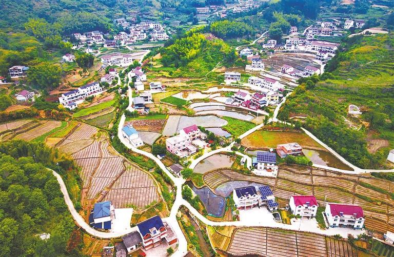 5月22日,安徽省安庆市岳西县毛尖山乡平精村,梯田与民居相映成趣,绘就一幅美丽乡村画卷。近年来,岳西县加大梯田保护利用力度,推进农旅融合发展,帮助农民增收。吴均奇摄(中经视觉)