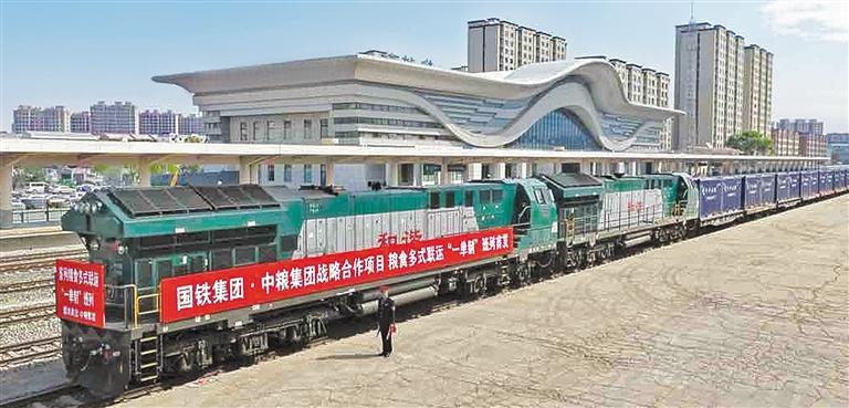 5月22日上午,一列满载3000吨玉米的货物班列从吉林榆树站发车,抵达辽宁营口港后,将搭乘海运货轮驶向广西钦州港。这是全国开行的首列粮食多式联运“一单制”班列,是国铁沈阳局在深化货运市场化改革上的又一创新举措,有效降低粮食物流成本。