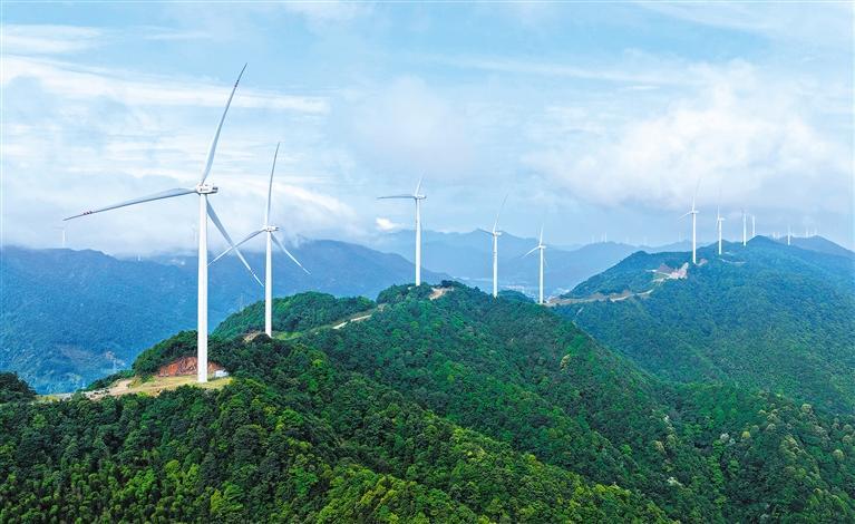 5月22日,位于江西省吉安市泰和县老营盘镇的高山风力发电场。近年来,当地充分利用高山风力资源,引进国家电力投资集团兴建高山风力发电场,产生清洁能源,助力低碳减排,推动绿色发展。