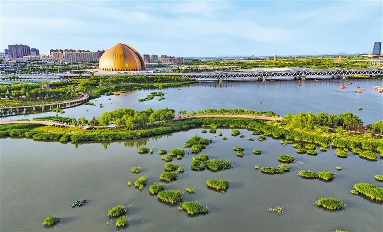 6月1日,新疆昌吉回族自治州昌吉市庭州生态绿谷水清岸绿,美不胜收。近年来,当地深入推进生态文明建设,将昔日荒滩打造为集生态涵养、休闲游憩、文化展示于一体的宜人空间,显著提升人居环境。陶维明摄(中经视觉)