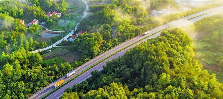 6月3日,沪武高速湖北省黄冈市英山县红山镇路段,高速公路与民居、山峦构成一幅山乡画卷。近年来,当地大力升级改造 国省道以及县乡公路,基础交通路网越织越密,有力促进大别山革命老区经济发展。王 江摄(中经视觉)