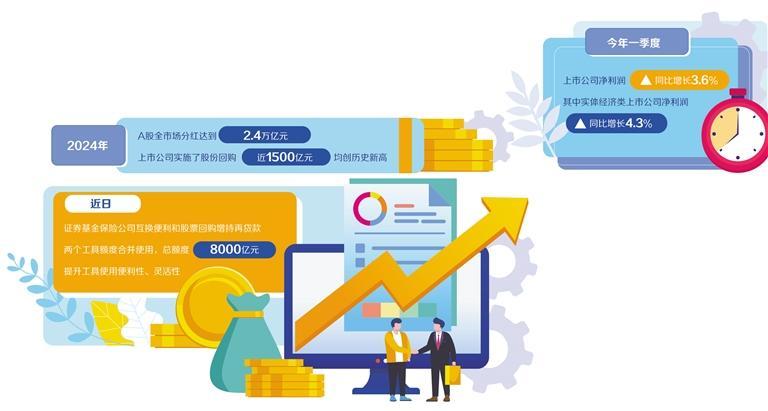 提高上市公司质量和投资回报是资本市场发展的基石。2024年A股全市场分红达到2.4万亿元,上市公司实施了股份回购近1500亿元,均创历史新高。当前,市场的分红回购已远超IPO、再融资和减持的总规模。此外,发行上市、信息披露、公司治理、并购重组、交易等全链条、各环节都进一步提升了监管效能,财务造假、欺诈发行、操纵市场和内幕交易等严重违法违规行为不断被严惩,资本市场生态正在不断优化。