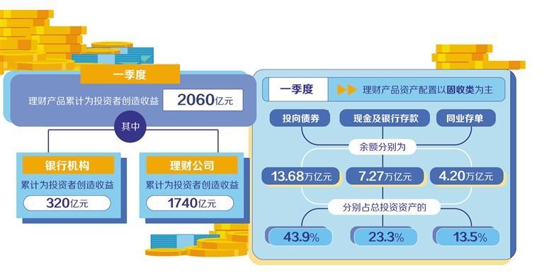 今年以来,银行理财市场发展平稳。一季度理财产品累计为投资者创造收益2060亿元。其中,银行机构累计为投资者创造收益320亿元,理财公司累计为投资者创造收益1740亿元。贝莱德建信理财公司相关负责人表示,理财公司积极参与权益市场,通过专业化的投资管理和多元化的资产配置,构建了多层次的产品体系,深化权益市场投资布局,优化产品设计与服务,推动更多中长期资金高效配置到资本市场,充分适配不同投资者的风险偏好与投资需求。