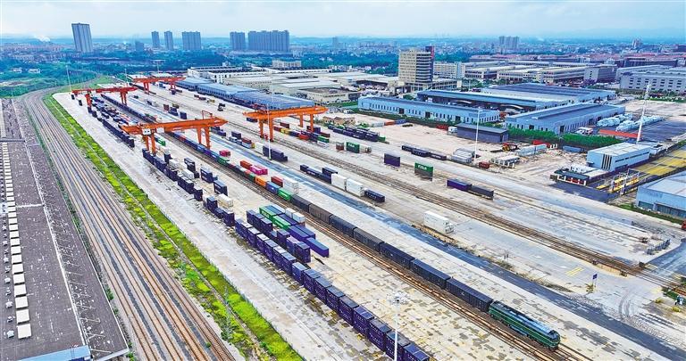 近日,位于江西省赣州市南康区龙岭镇的赣州国际陆港班列有序进出港,货物装卸繁忙。近年来,赣州市加快构建现代化物流体系,优化物流行业发展环境,助推企业产品运输降成本提质效,有效促进现代物流产业与制造业、商贸服务业融合互促发展。