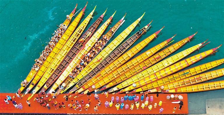 ▲5月31日,四川省阆中市南津关古镇龙舟比赛吸引众多游客前来观赛。