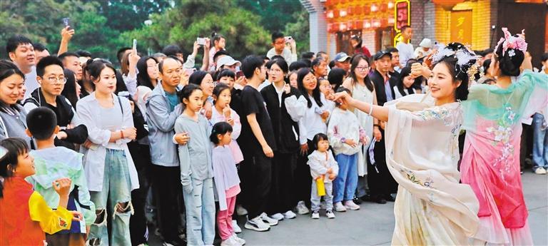 ▼5月31日,游客在河北省秦皇岛市海港区秦皇小巷观看舞蹈演出。节假日期间,该景区推出游逛集市、观演出、品美食等多项活动,丰富假日文旅体验。