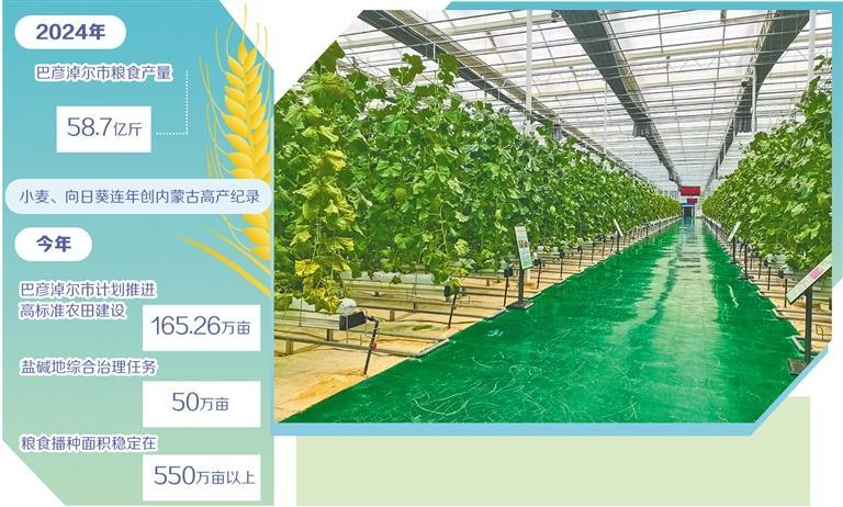 正是得益于高标准农田建设和现代农业科技应用,2024年,巴彦淖尔市粮食产量58.7亿斤,小麦、向日葵连年创全区高产纪录。今年,巴彦淖尔市计划推进高标准农田建设165.26万亩,盐碱地综合治理任务50万亩;粮食播种面积稳定在550万亩以上,推动粮油作物大面积均衡增产、小麦扩量提质。