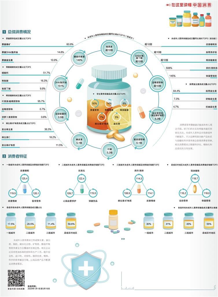 随着经济社会发展和健康意识不断提升,未成年人营养品市场规模不断扩大,已成为大健康产业中极具活力的细分领域。儿童、学生、青少年营养保健品的成交量持续走高,产品种类日益丰富,彰显出社会对未成年人健康成长的关怀。