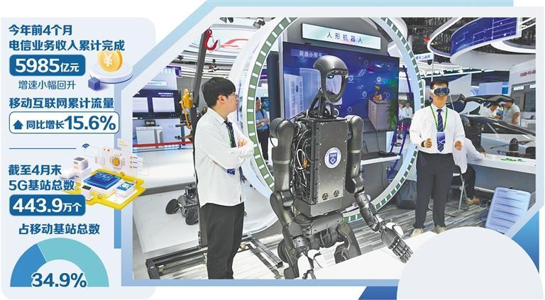 作为数字产业的重要领域之一,我国信息通信业技术实力全球领先,产业规模稳中有升。工业和信息化部最新数据显示,今年前4个月,电信业务收入累计完成5985亿元,增速小幅回升;移动互联网累计流量同比增长15.6%,5G、千兆光网、物联网等新型信息基础设施建设稳步推进。