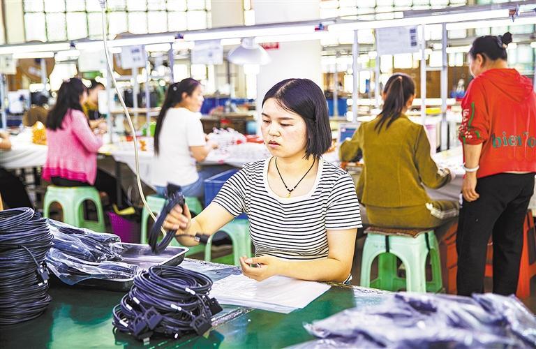 6月4日,贵州省黔西市素朴镇返乡创业园一家线材连接器生产企业车间,工人正在赶制订单。近年来,黔西市在部分乡镇(街道)创办返乡创业园,通过内外联动在返乡创业园建设了一批“微工厂”“微车间”,帮助当地群众在家门口就业增收。史开心摄(中经视觉)