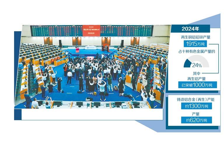 再生有色金属是保障我国乃至全球有色金属资源安全、推动绿色低碳转型的关键力量。2024年,我国再生铜铝铅锌产量达1915万吨,占十种有色金属产量的24%。其中,再生铝产量已突破1000万吨。