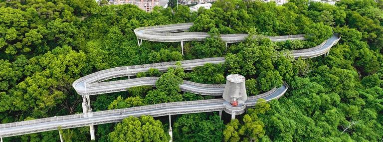 6月11日,福州市金牛山福道夏日风景如画,吸引市民前来游玩。近年来,当地通过数百公里的“福道”,串联起多个城市公园,打造绿意盎然的城市生态环境。 王旺旺摄(中经视觉)