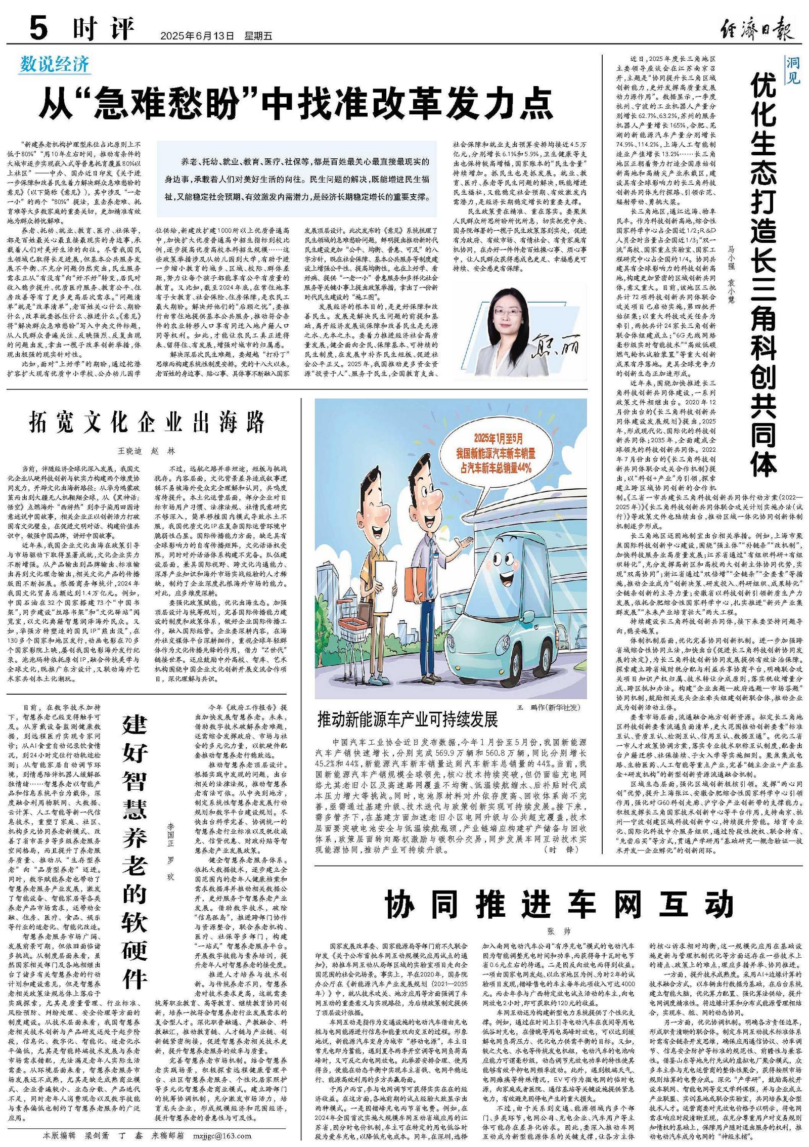 近日,2025年度长三角地区主要领导座谈会在江苏南京召开,主题是“协同提升长三角区域创新能力,更好发挥高质量发展动力源作用”。数据显示,一季度杭州、宁波的工业机器人产量分别增长62.7%、63.2%,苏州的服务机器人产量增长165%,合肥、芜湖的新能源汽车产量分别增长74.9%、114.2%,上海人工智能制造业产值增长13.2%……长三角地区正朝着努力打造全国原始创新高地和高精尖产业承载区,建设具有全球影响力的长三角科技创新共同体先行探路、引领示范、辐射带动、勇挑大梁。