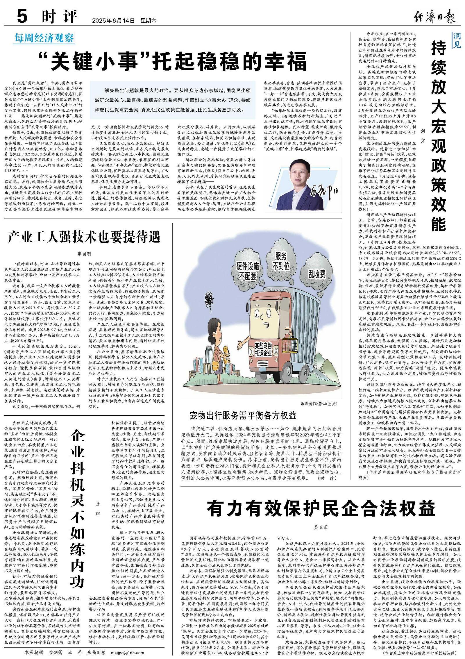 持续巩固和提升企业效益。培育壮大新质生产力,积极打造一批新兴支柱产业。推动科技创新和产业创新融合发展,加快传统产业转型升级,坚持标准引领,规范竞争秩序。持续用力推进关键核心技术攻关,创新推出债券市场的“科技板”。加快实施“人工智能+”行动,推动中国制造加速迈向“中国智造”,增强国际合作和竞争新优势。支持民营企业在新兴产业、未来产业投资布局。多措并举帮扶困难企业,加快推动内外贸一体化。