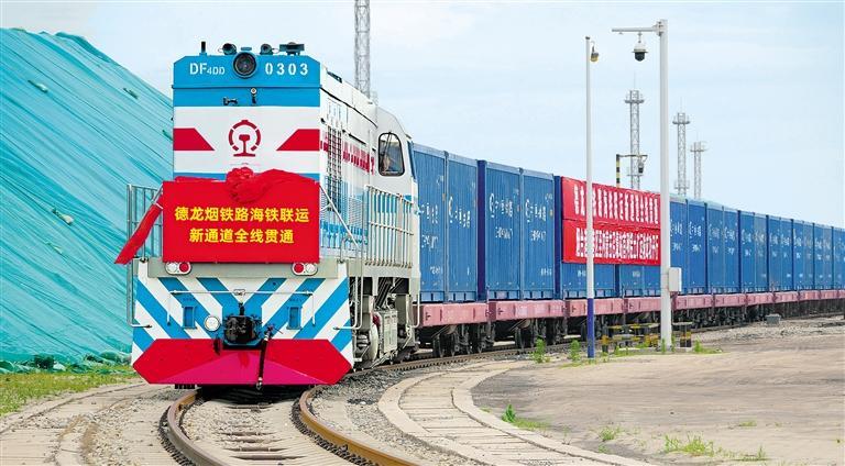 6月13日,首列“烟台港西港区——内蒙古召壕站”铝土矿班列开行。该班列首次通过德龙烟铁路连接山东省外运输通道,直达内蒙古铝加工企业,运行线路进一步缩短,运输时效得到优化。唐 克摄(中经视觉)
