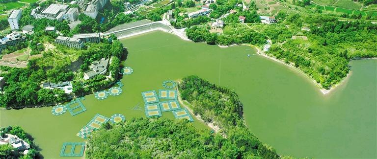 6月15日,四川省内江市东兴区松林水库风景优美。近年来,东兴区扎实推进沱江流域水体保护,有序推动生态隔离设施、水生植物净化带、浮动式生态湿地建设。唐明润摄(中经视觉)