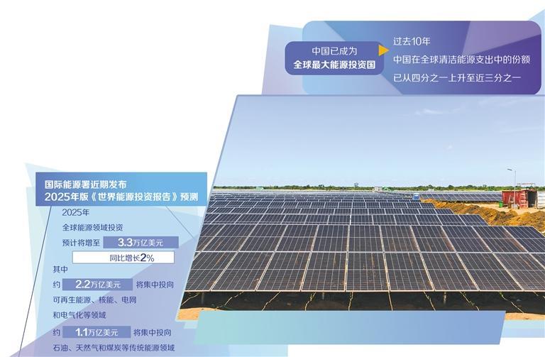 近日,国际能源署发布2025年版《世界能源投资报告》显示,尽管全球面临地缘政治紧张局势加剧和经济前景不确定等不利因素,导致部分投资者对新能源项目持观望态度,但现有项目支出并未受到明显影响。2025年,全球能源领域投资预计将增至3.3万亿美元,同比增长2%。其中,约2.2万亿美元将集中投向可再生能源、核能、电网和电气化等领域,石油、天然气和煤炭等传统能源领域的投资将达到约1.1万亿美元。