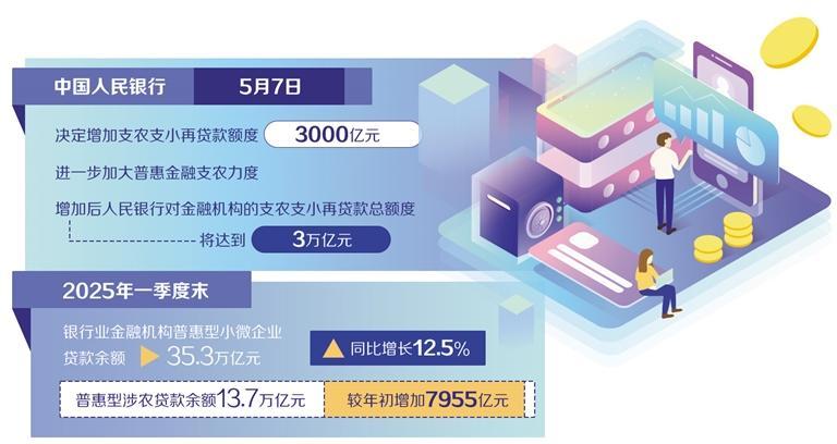 作为金融“五篇大文章”之一,普惠金融关系小微企业经营主体的发展,关系民生福祉。2025年一季度末,银行业金融机构普惠型小微企业贷款余额35.3万亿元,同比增长12.5%。普惠型涉农贷款余额13.7万亿元,较年初增加7955亿元。