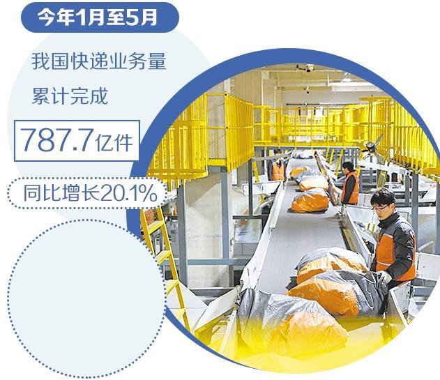 国家邮政局数据显示,今年1月至5月,我国快递业务量累计完成787.7亿件,同比增长20.1%。市场规模实现较快增长的同时,快递服务质效也持续提升。