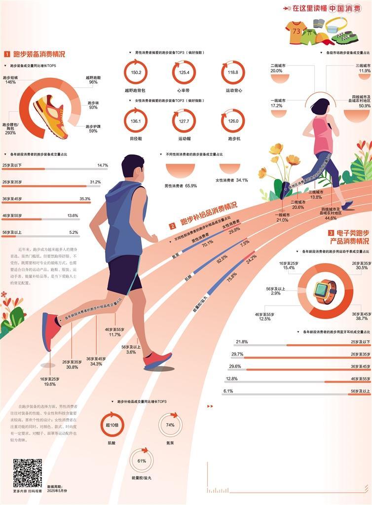 在全民健身热潮下,跑步成为不少人生活中不可或缺的一部分。销售数据显示,跑步装备销售火热,越野跑鞋、跑步护踝、跑步腰包、运动手表等产品受到消费者青睐。